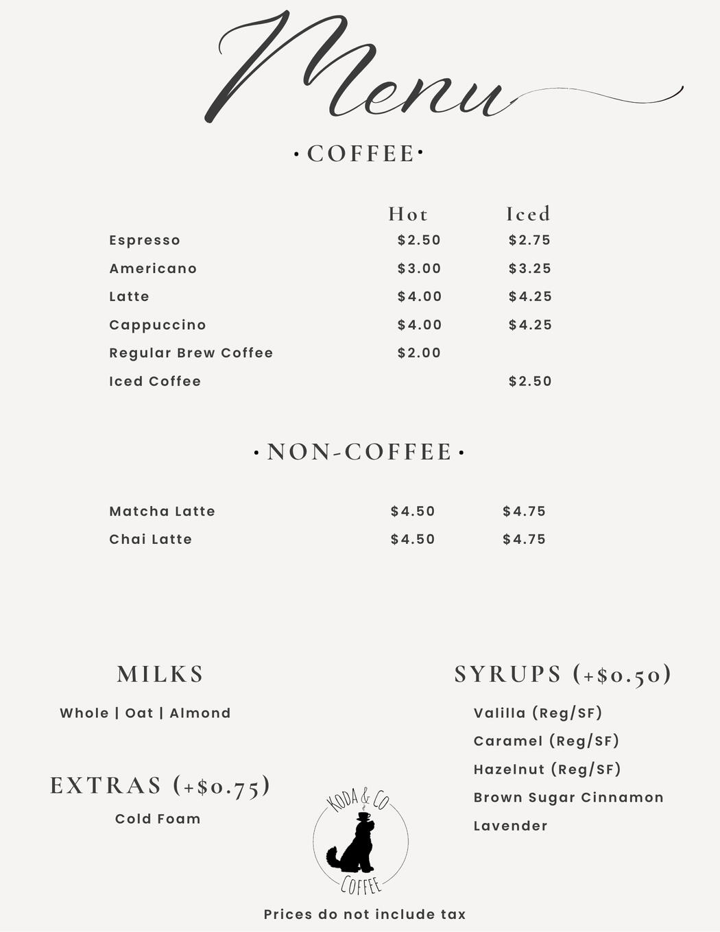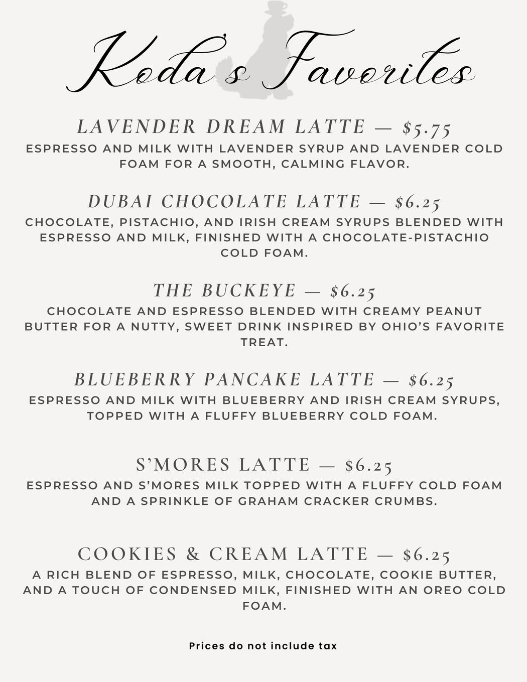 Koda & Co Coffee was brewed from more than beans — it was brewed from memories.Born from the simple beauty of connection and those quiet, meaningful moments we share over a cup of coffee, this brand celebrates togetherness, intention, and the small joys that make life truly special. It’s about more than just coffee; it’s about creating a space where everyday magic can be found in the little moments that bring us closer.Named after my best friend and sidekick, Koda (yes — the fluffy one), Koda & Co is built on love, simplicity, and a little wag of joy in every cup.Whether you're visiting our shop or following our journey online, we’re so happy you’re here. Welcome to the Co.Want to know what we’re brewing & where we’ll be next?
